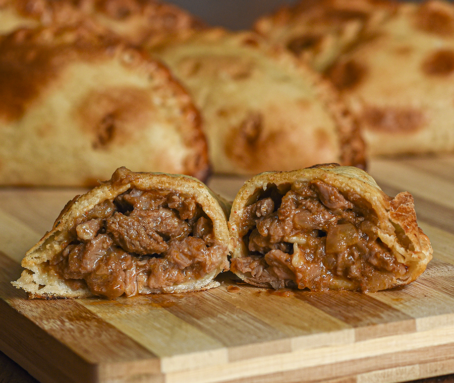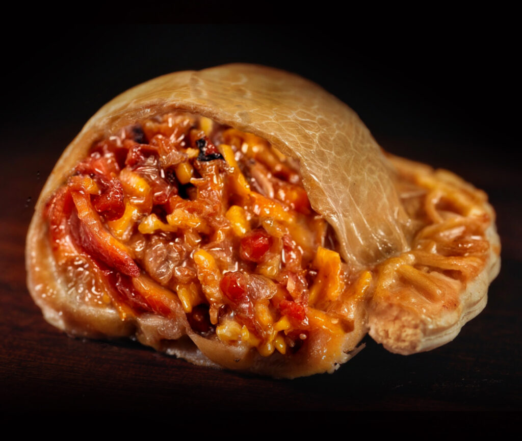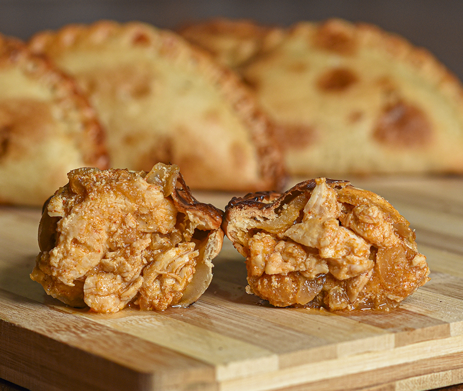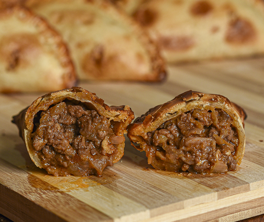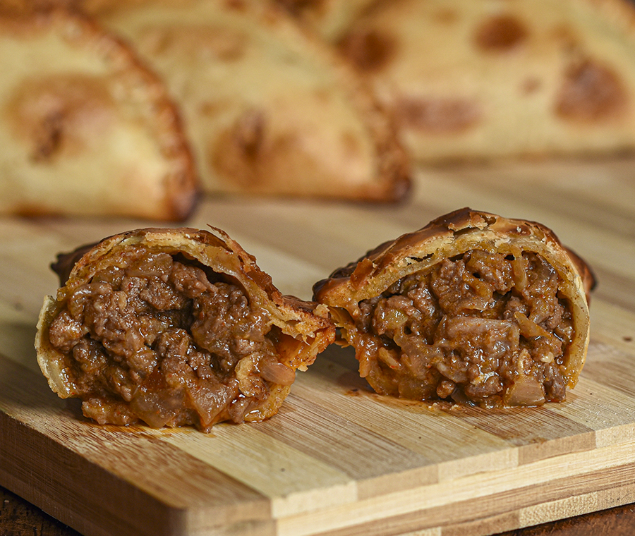 Mięso, karmelizowana cebula, szczypiorek, papryka, oliwa z oliwek, jajko i argentyńskie przyprawy.