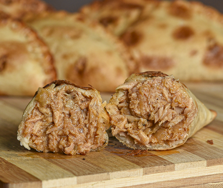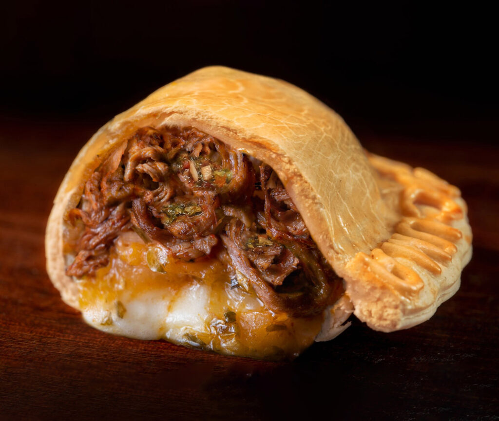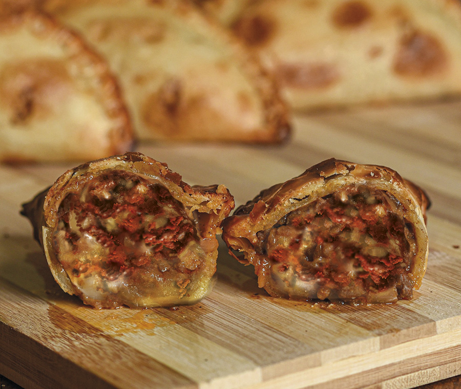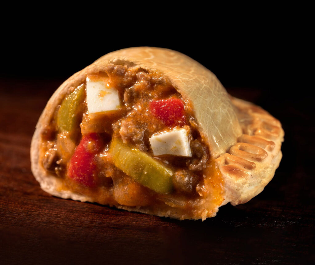 Mięso, karmelizowana cebula, szczypiorek, papryka, oliwa z oliwek, jajko i argentyńskie przyprawy.