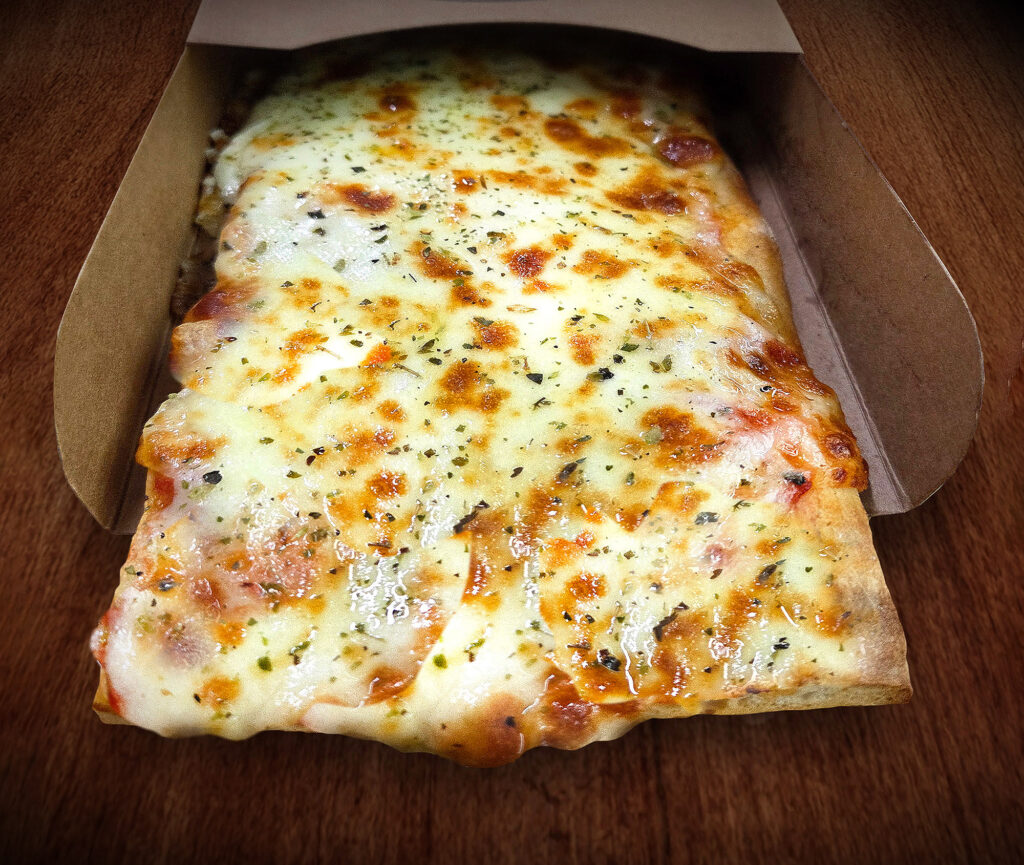 Ciasto rzemieślnicze, sos pomidorowy, ser mozzarella i oregano.